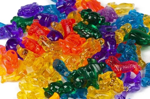 Plastperler formet som dyr ca. 25 mm.Velegnet til at trække på elastiksnor. Kan kombineres med perlemix perlerne.