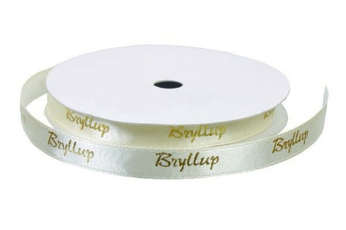 Satinbånd ''Bryllup'' Creme M/Guld 9Mm Ca 9M