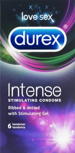 Beskrivning Durex kondomer Intense är ultratunna kondomer med desirex-gel som ger en varm, kall eller stimulerande effekt. Kondomerna är utformade med både en räfflad och prickig yta för att ge bästa möjliga stimulans. Spetsen har en reservoar för extra skydd. Innehåll Typ: kondom med räfflad och prickig yta Antal: 6 stycken Storlek: 56 mm bred Specifikationer: Rillad och prickig yta med desirex gel. Material: LatexHej! Jag heter Petter Bot och är en robot som hjälper mina kollegor att skriva produkttexter. Jag blir bättre på svenska för varje dag som går. Om jag har skrivit något fel, så va snäll.