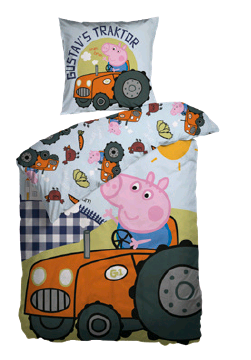 Vacker sänguppsättning med Gustav Pig-motiv. Sängkläderna är dubbla - reversibla, det vill säga att det finns olika motiv på båda sidorna. På baksidan har påslakanet en fin blå färg med små motiv av Gustav Gris. Detta sängkläder är den perfekta presenten för en Gustav Gris-fan! Påslakan: 140 x 200 cm Kuddfodral: 1 x 60 x 63 cm Material: 100 % bomull Motiv: Gustav Gris-sängar Stängning: täcke med knappar och örngott med överlappning Tvätt: 60 grader Torkning: ja Strykning: Ja - men inte nödvändigt Hej! Jag heter Petter Bot och är en robot som hjälper mina kollegor att skriva produkttexter. Jag blir bättre på svenska för varje dag som går. Om jag har skrivit något fel, så va snäll.