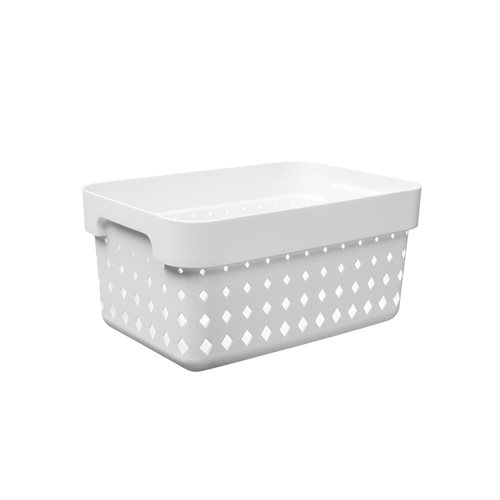 Vit. 18cm. Brede. 26cm. Dybte. 12,6cm. Höjde.