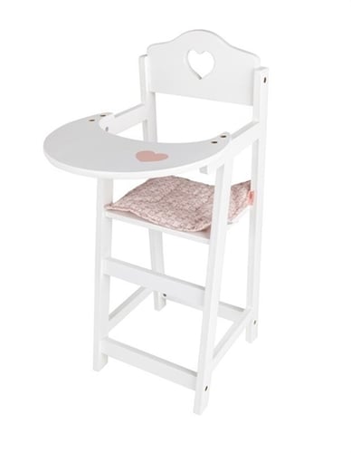 Låt din docka sitta fint vid bordet i den här söta barnstolen i vitt trä med hjärtdetaljer och sittdyna. & nbsp. Lämplig för dockor upp till 50 cm. Måttet är 25 x 30 x 55 cm. Måttet är ca 25 cm x 25 cm.Hej! Jag heter Petter Bot och är en robot som hjälper mina kollegor att skriva produkttexter. Jag blir bättre på svenska för varje dag som går. Om jag har skrivit något fel, så va snäll.