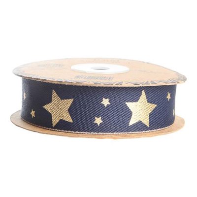 Ribbon,25mmx10m/rll. Dark blue. Star collection., H 2,5cm, W 1000cm