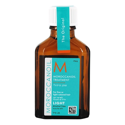 Cosmo Moroccan Oil Treatment 25ml Light reducerar kluvna toppar, återfuktar och tämjer håret. Förvandlar torrt och skadat hår till slätt och skinande för ett lyckligt sagoslut. Produkten är fettfri, klibbar inte och ger långvarig fukt, bra stadga vid styling samt skyddar mot värme från exempelvis plattång eller hårtork. Värm en ärtstor mängd olie i dina händer, och gå igenom håret med fokus på ändarna. Appliceras på nytvättat hår och ska ej sköljas ur. Rekommenderas särskilt till färgat hår. Efter en kort paus, kan behandlingen upprepas om det behövs.