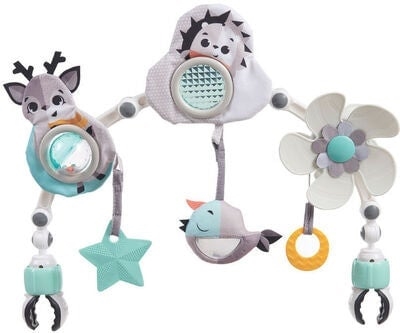 BeskrivningSkapa roliga och lyckliga stunder för din bebis när du är på en resa. Blir din bebis lätt otålig i vagnen? Då kommer du att älska den här roliga leksaken från Tiny Love. Den består av sju leksaker med olika färger, texturer och ljud. Det hjälper till att utveckla ditt barns koordination, sinnen och förståelse för orsak och verkan. En perfekt leksak som fångar ditt barns uppmärksamhet när du är på språng. Produktinformation: Sensorisk utveckling från 0 månader och förståelse för orsak och verkan från 5 månader. Lätt att justera efter barnets ålder och preferenser Spelar 4 olika melodier med babyaktivering Spegel Skramlande boll Propeller med babyaktivering Tandleksaker Kan enkelt monteras på de flesta barnvagnar Ålder: Från 0 månaderSpecifikationer:Färg:Magical TalesVikt:7 KG