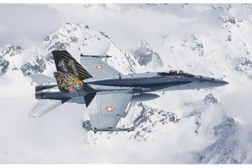 F/A-18 Hornet “Tiger Meet 2016” Special ColorThe twin-engine supersonic multirole fighter F/A-18 Hornet has been developed to offer an extraordinary flexibility and versatility.It can perform air superiority, ground attack, close support and reconnaissance duties. Thanks to its flexibility, the F/A-18 has been adopted by several Air Forces becoming a relevant commercial success. It is used, in its various configurations, by US Navy, US Marine Corps, Australian, Canadian, Spanish and Swiss Air Forces. More in detail, 26 single seater F/A-18 and 7 twin seater, equipping 3 squadrons, are currently used by Swiss Air Force.The Hornets of “Fliegerstaffel 11”, the backbone of the Swiss air defense system operating from the Meiringen airfield, participated, in 2016, to the NATO Tiger Meet Event in Saragoza, where several planes, from all NATO members, were decorated with the characteristic “Tiger” livery.