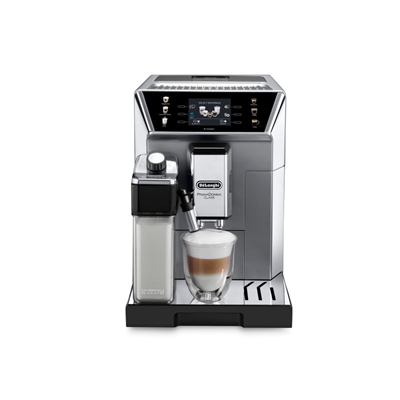 DeLonghi PrimaDonna ECAM 550.85.MS. Produkttyp: Kombinerad kaffebryggare, Typ av kaffebryggare: Helautomatisk, Kaffe ingångstyp: Kaffebönor, Behållare för bryggt kaffe: Bägare, Inbyggd kvarn. Skärmtyp: TFT. Effekt: 1450 W. Produktens färg: Metallisk