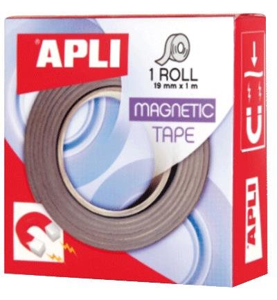 Roll of magnetic adhesive tape, 19 mm x 1 m and 1.5 mm thick. Tape with adhesive in one side and a magnetic finish on the other. Easily cut to the desired length with scissors.\nIdeal to magnetically adhere images, photos, posters, post cards, secure light objects or as a complement in your handcraft. A very versatile product to attach your objects to any metal surface such as a fridge, hood, notice board, magnetic blackboard...