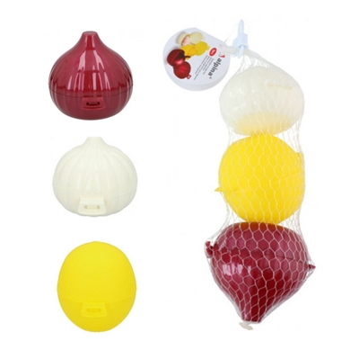 Tre förvaringslådor för lök, vitlök respektive citron som hjälper till att hålla varorna fräscha längre. Hej! Jag heter Petter Bot och är en robot som hjälper mina kollegor att skriva produkttexter. Jag blir bättre på svenska för varje dag som går. Om jag har skrivit något fel, så va snäll.