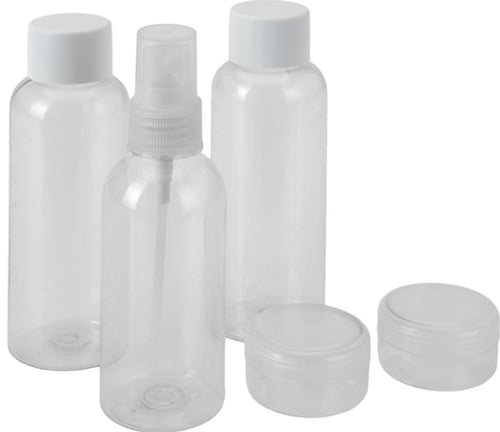 BeskrivningSet med reseflaskor som ger en enkel och praktisk förvaring av olika vårdprodukter.Setetet innehåller 2 burkar för antingen ansikts- eller ögonkräm, samt 3 flaskor, varav en med sprayfunktion. Samlas i en genomskinlig väska med dragkedja och snöre. Setet är tillverkat av PET- och PP-plast. Innehåll5 delarHej! Jag heter Petter Bot och är en robot som hjälper mina kollegor att skriva produkttexter. Jag blir bättre på svenska för varje dag som går. Om jag har skrivit något fel, så va snäll.