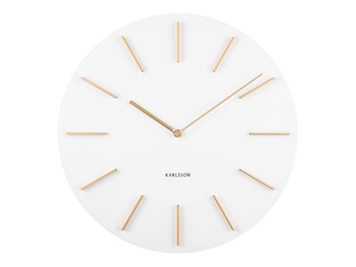 Round clock Discreet från Karlsson har en modern look som passar vilken stil och plats som helst! Som namnet antyder är denna Karlsson-klocka väldigt diskret och sticker inte ut. Ge denna Karlsson-klocka en plats i bokhyllan, på en byrå eller på ditt nattduksbord eller häng upp den på väggen i hallen eller köket. Den eleganta designen - rund med visare som kommer fram - hos denna moderna Karlsson-klocka gör den lämplig för alla interiörer. Mått: 40 cm. Levereras utan 1 AA-batteri. Karlssons klockor och väckarklockor är världsfavoriter. Storlek: D. 40cm Färg: Vit & Messing Specifikationer: Excl. AA batteri