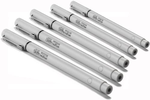 Pen der sidder komfortabelt i hånden og giver mulighed for fleksible greb. Professionel, vandtæt ikke-falende pigmentblæk, med ensartet og pålideligt blækflow. Fåes i 5 nib størrelser, 0,1, 0,3, 0,5, 0,8, 1,0